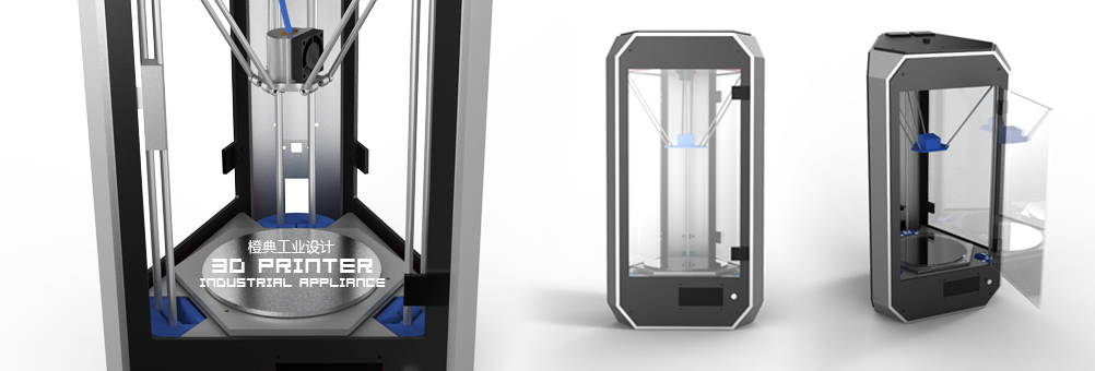 传统桌面是3D打印机的移动马达与加工头集成在一起,导致移动速度变慢加工精准度下降等问题,三轴3D打印机将移动马达分散安装在三根立式光轴的顶部,通过连杆控制中央加工头空间位置,加工头更加轻盈,打印效率更高。本次的设计以工业感十足的稳定造型对产品进行包装,同时优化了下方打印平台固定方式,丝盘固定方式等细节。该产品成功参加2015届德国汉诺威工业设计展并获好评。