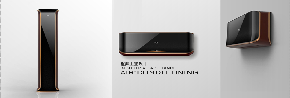 高档空调系列设计 为了将本次高端空调项目打造成客户产品线中的旗舰产品,橙典设计研究团队进行了广泛的定量调研,针对新技术运用到外观意向收集了广泛的调研问卷反馈,从中提取出大屏幕,侧面出风,物联网等用户较感兴趣的功能点,并顺应用户希望家电色彩更符合现代家装环境的诉求,选择了最受消费者欢迎的古铜色调定位该款空调的标准色,并运用中国古代爵位官帽的造型作为主体元素,尽显大气尊贵。在柜式空调设计完成后,我们将同样的设计元素运用在挂机上,也取得了较好的设计效果。